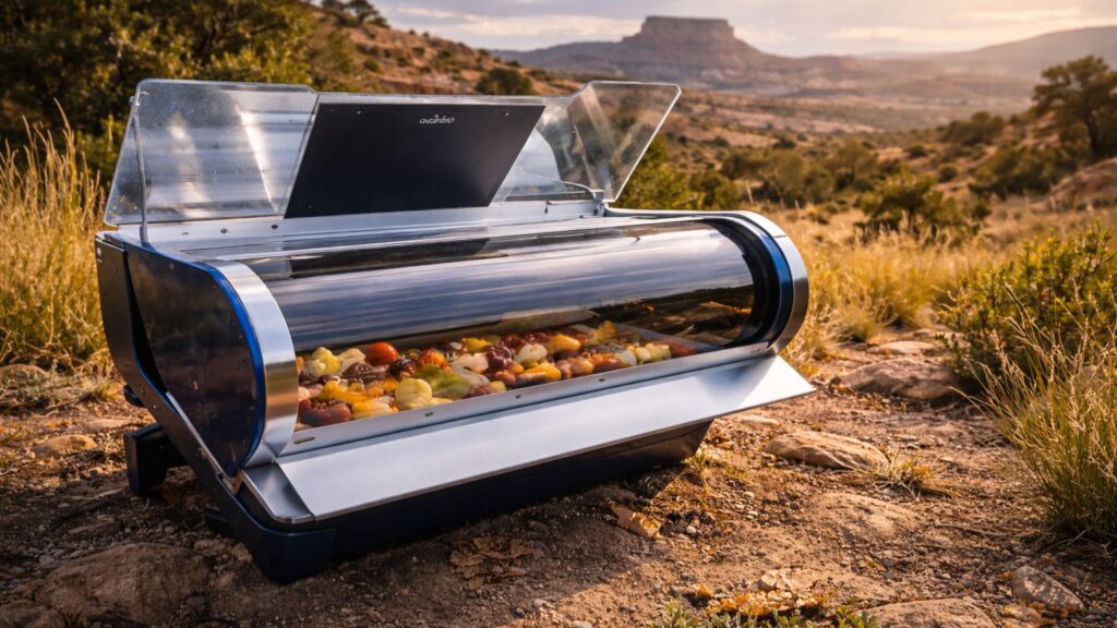 Solar ovens handle baking, stews, and slow cooked meals during sunny afternoons.